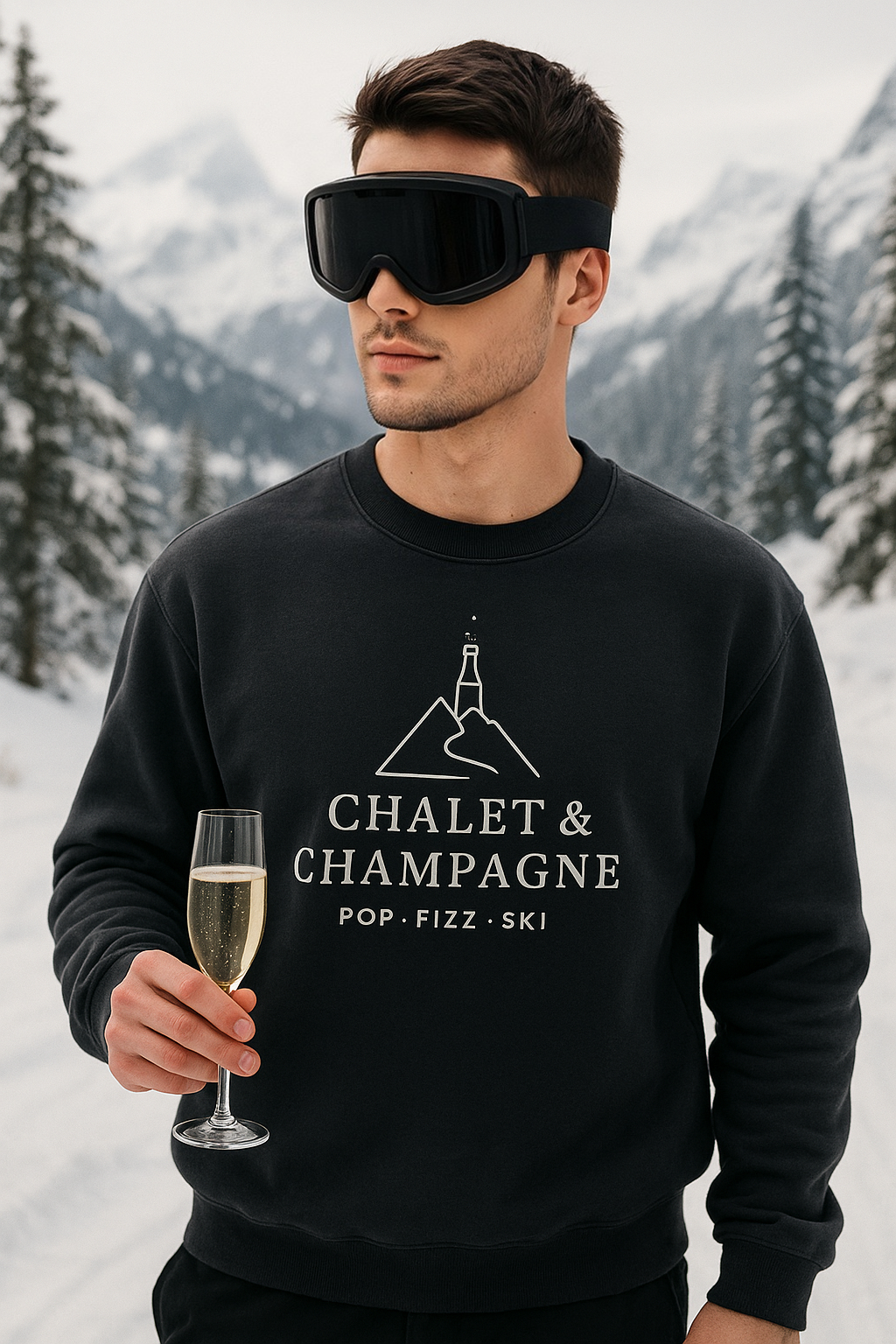 A Chalet & Champagne pulóver a téli elegancia esszenciája — egyetlen darabban sűríti össze az alpesi hangulatot, a hegyi faházak meleg, fás illatú atmoszféráját és a pezsgő kifinomult luxusát. A letisztult, mégis karakteres grafika a modern hegyvidéki életstílust idézi: a hófödte csúcsokat, az esti fényben ragyogó kis faházakat, a síelés szabadságát és azt az érzést, amikor egy hosszú nap után megnyílik a pezsgő, és a pici buborékok hangja betölti a csendes hegyi levegőt.