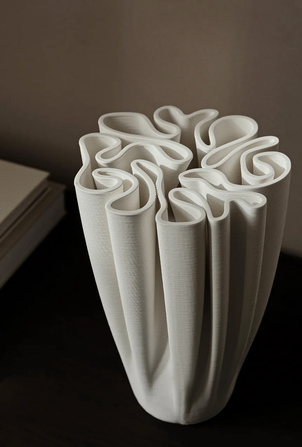 Eredeti, modern, dinamikus forma. 3D nyomtatási technológiával készült, anyaga kerámia.