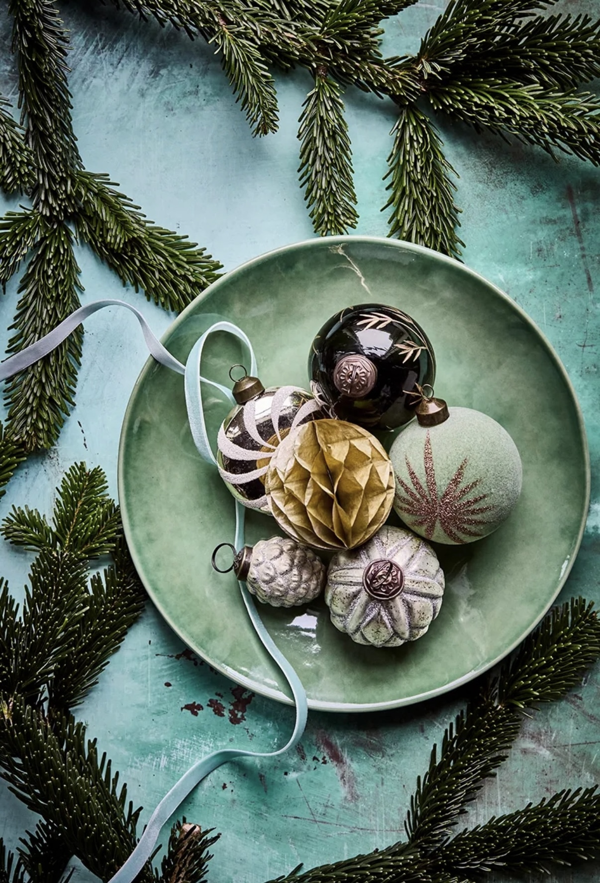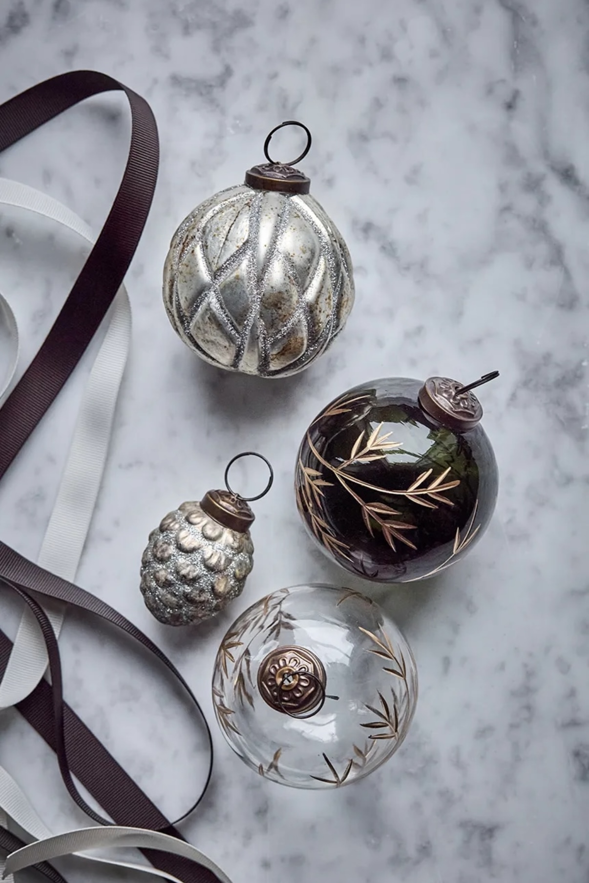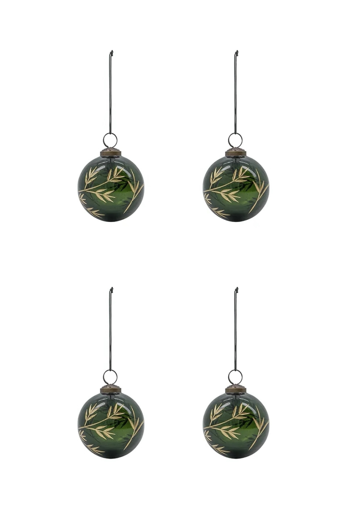 4 db ézzel készített 7,5 cm-es fúvott üvegdíszek.