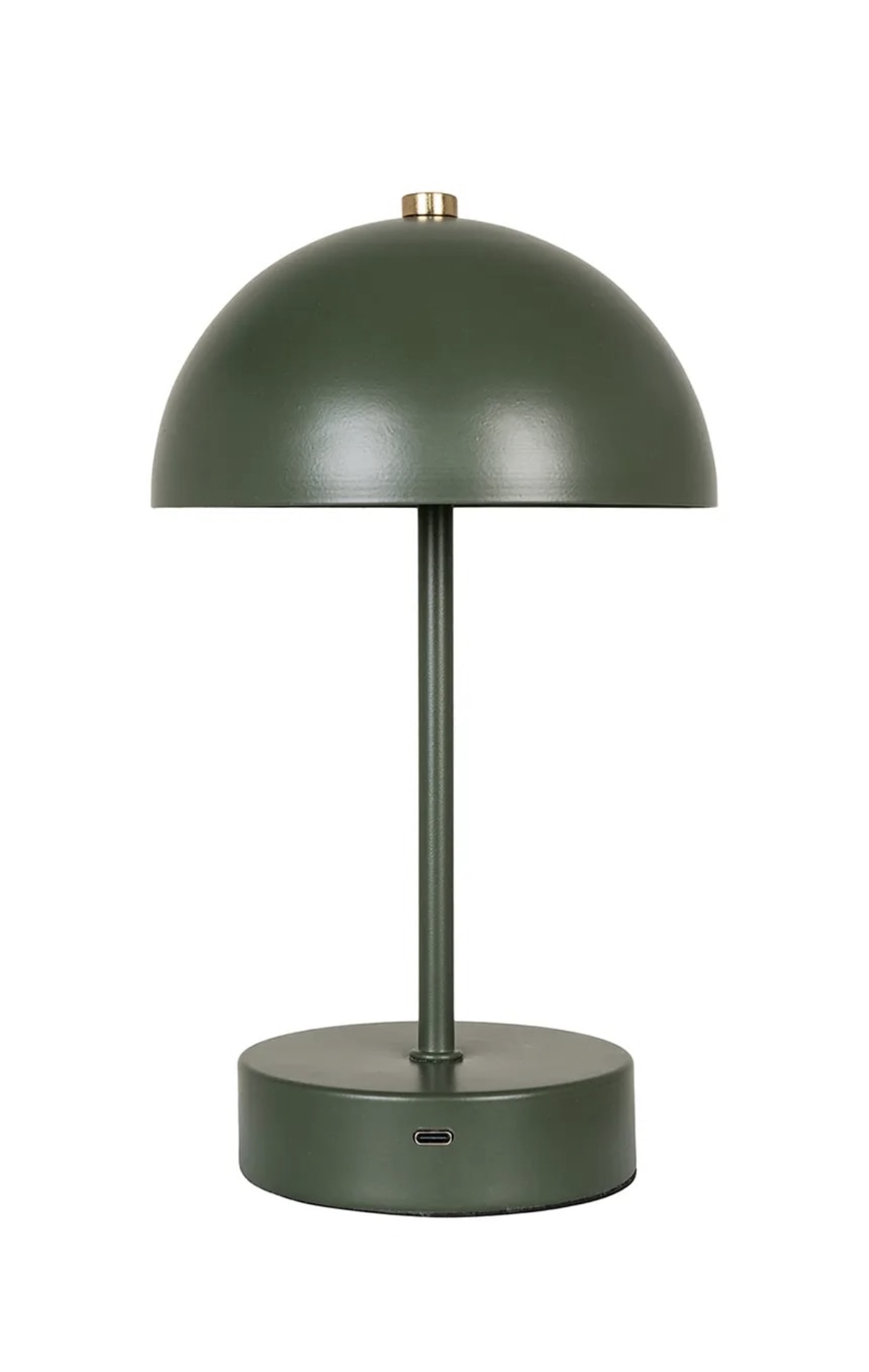 Elegáns zöld design lámpa. Beépített, újratölthető akkumulátor.